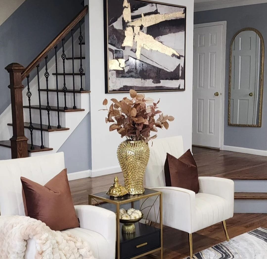 luxury living area with our abstract foil print covers