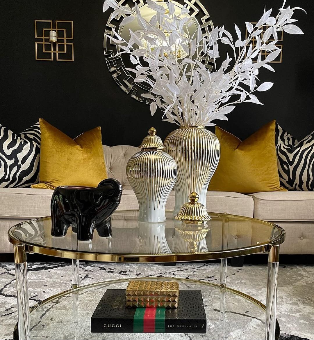 our black and gold covers is the prefect finish to this decor are, so glamorous