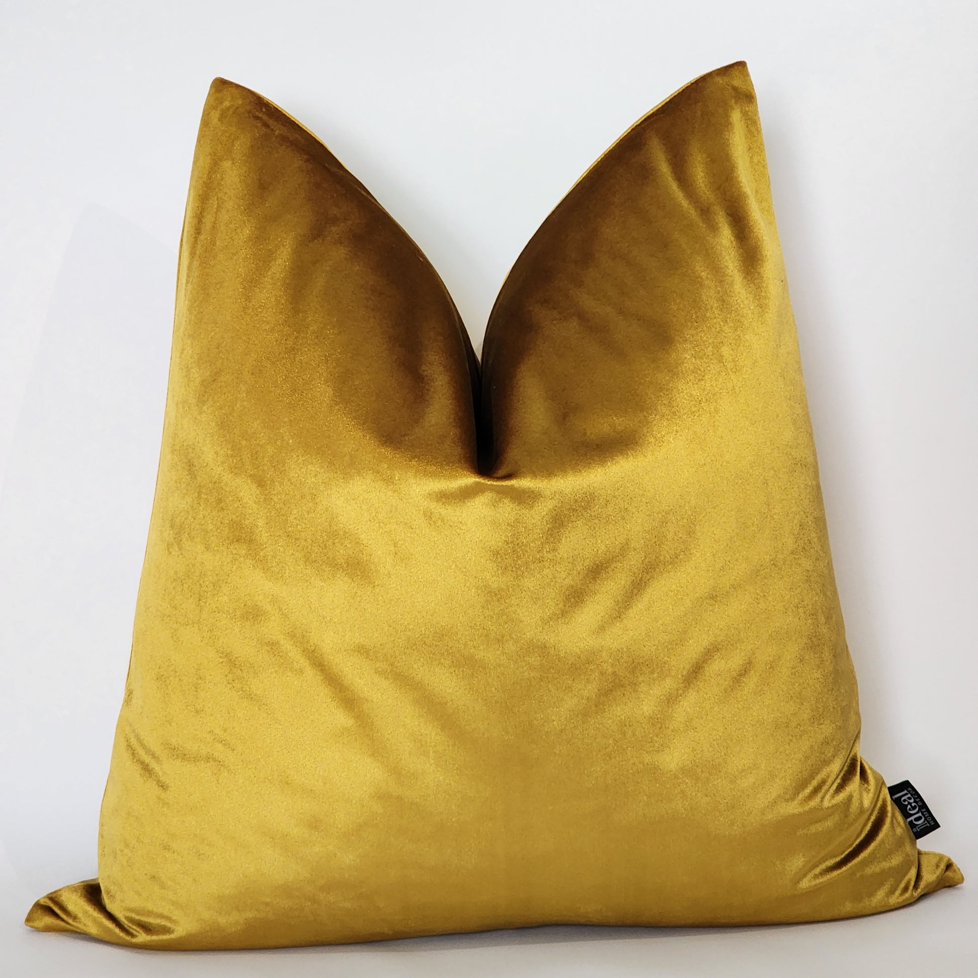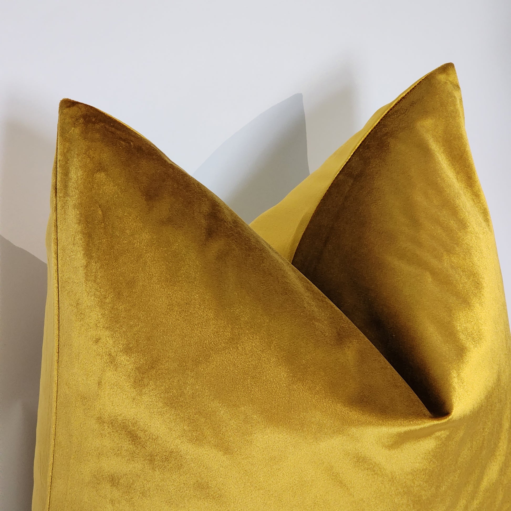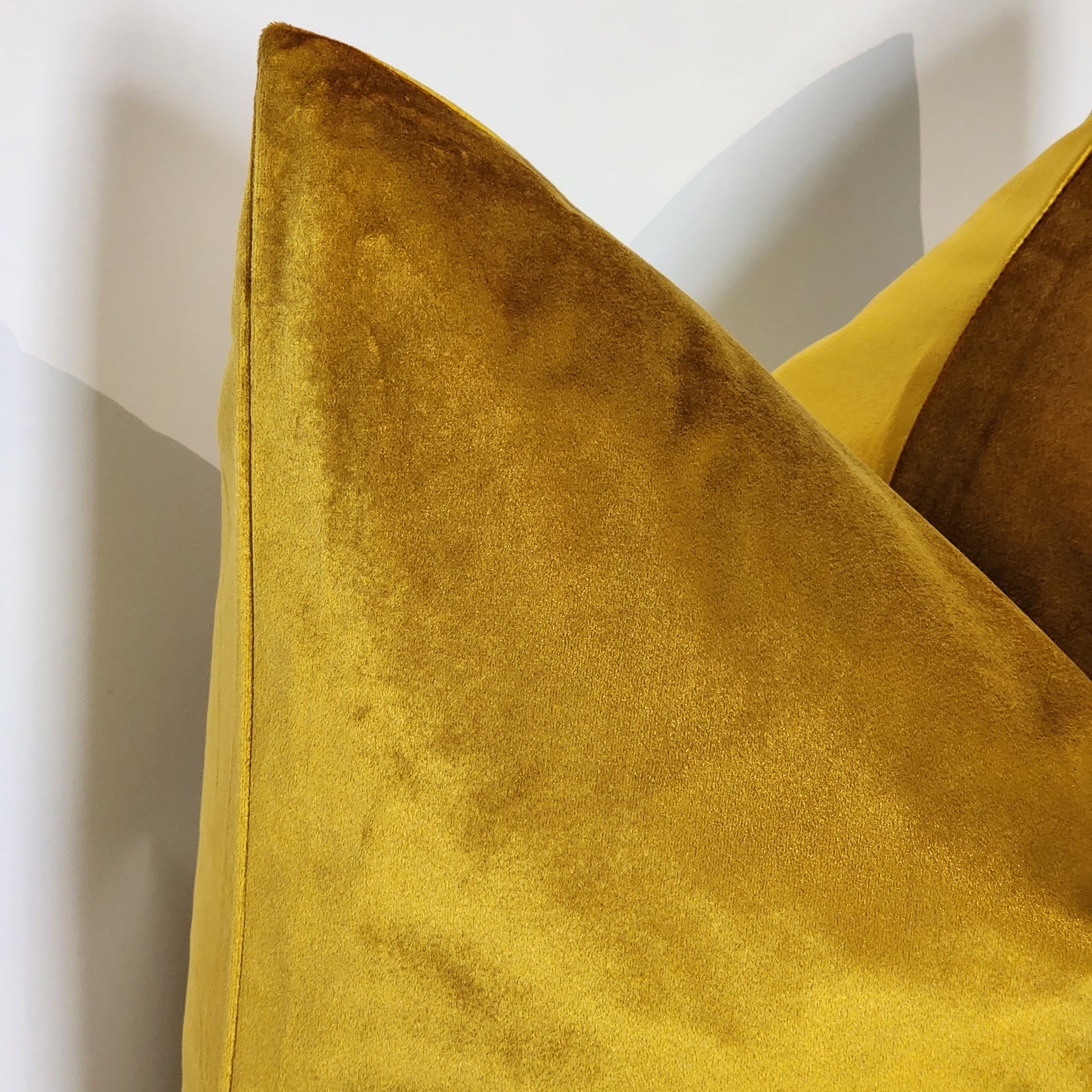 This beautiful soft honey gold velvet pillow/ cover is made of a 100% polyester velvet fabric.  It's a great piece to had to a refreshing space.