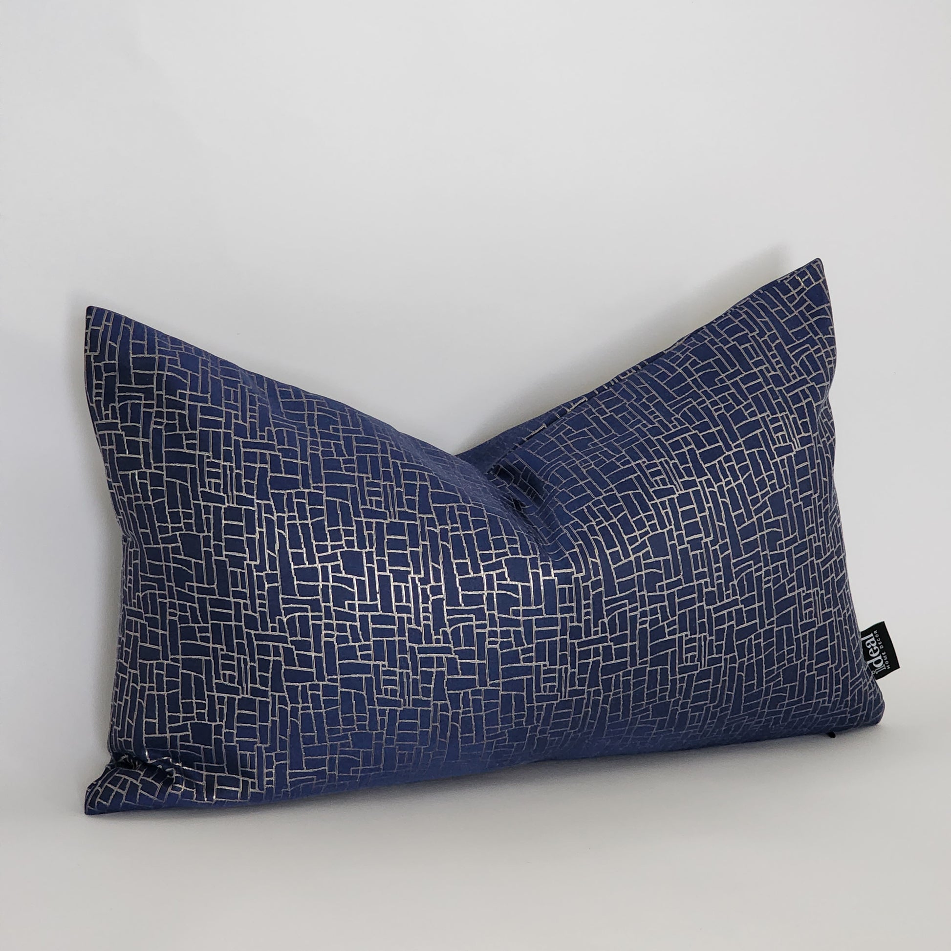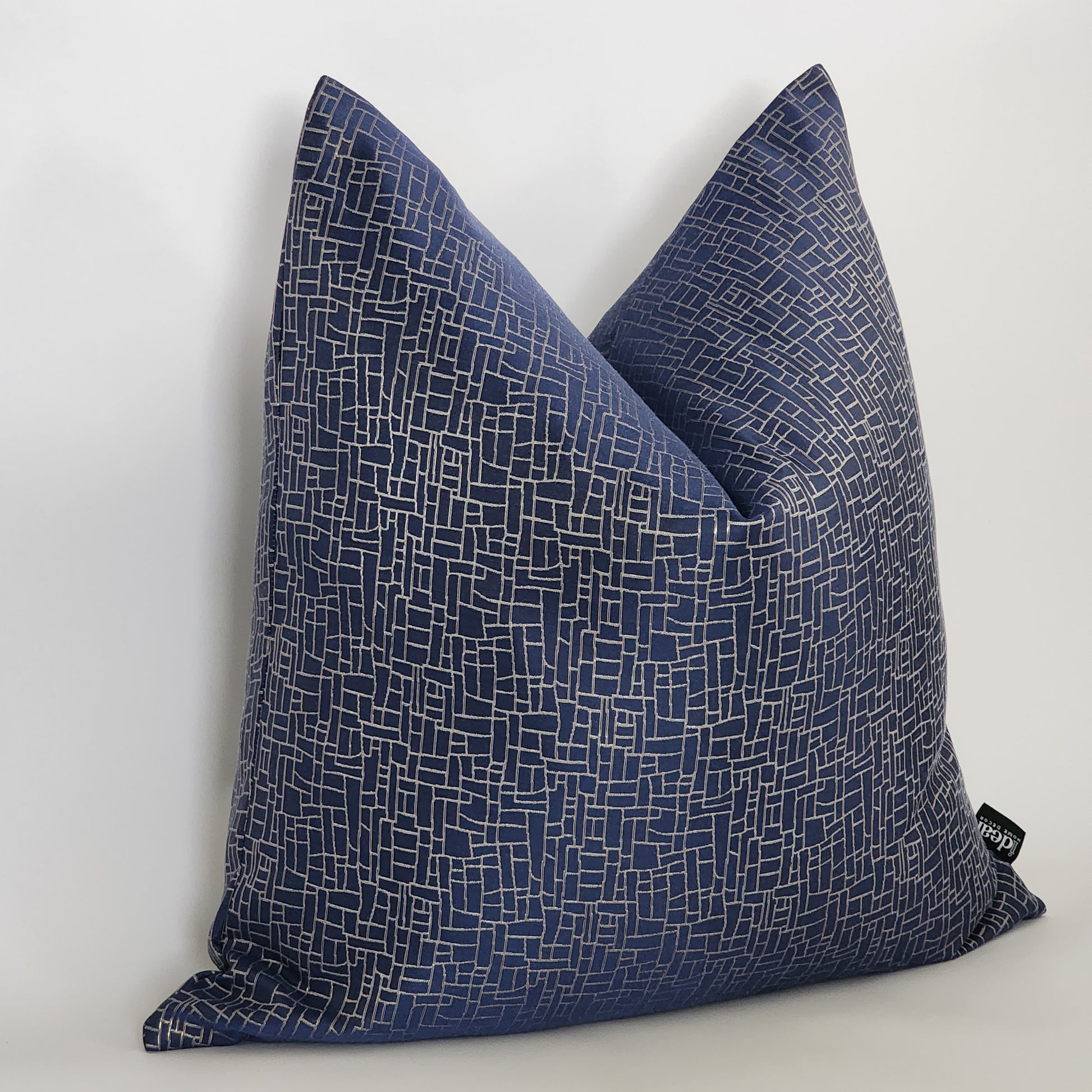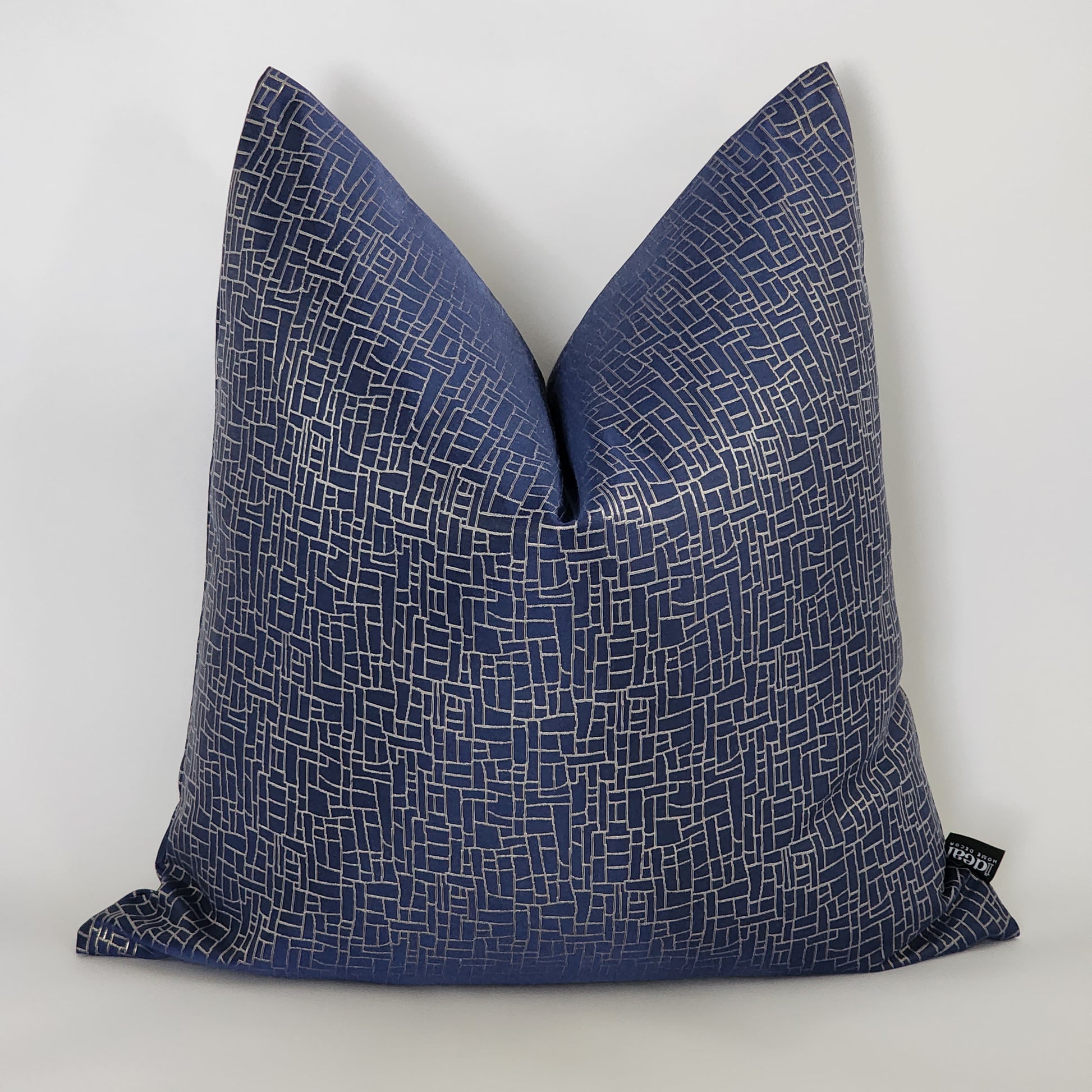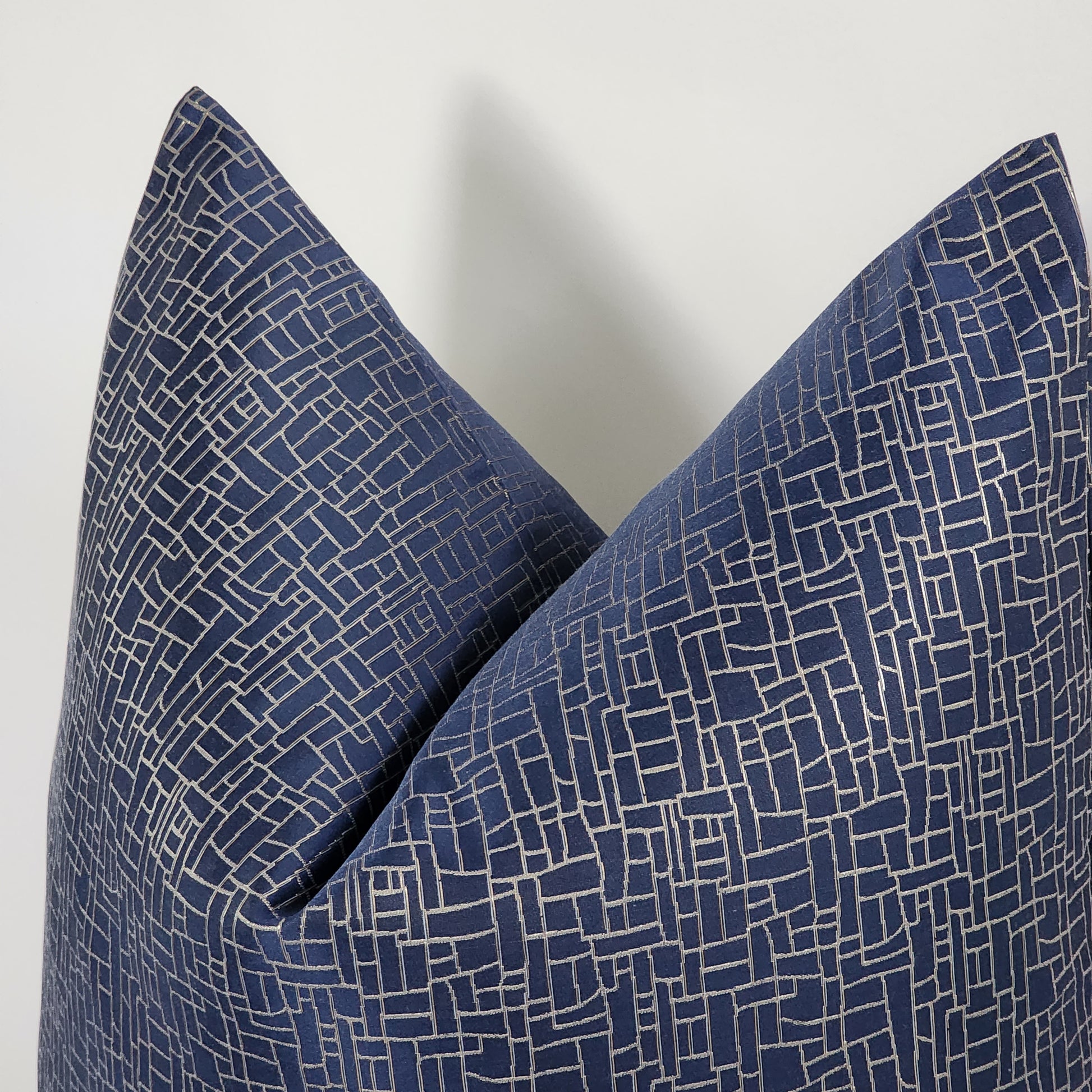The navy way is a Jacquard pillow with a unique design mixer detail of shinny silver and champagne gold lines that gives this pillow a elegant look